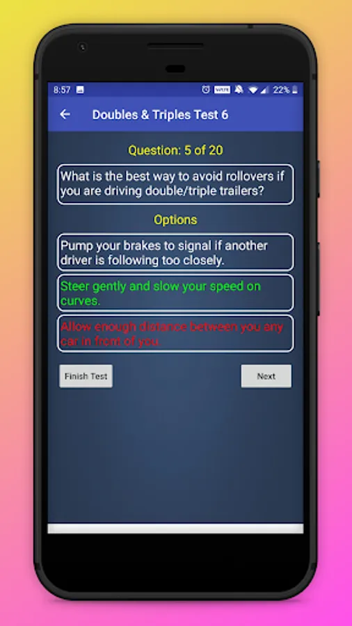 Doubles & Triples Test - CDL is a free app to prepare yourself for the CDL doubles & triples test. Doubles and triples are vehicles with two or three trailers attached to your truck’s tractor. As a result, you can carry more with each load you transport. Jobs that require doubles and triples endorsements run the full span of trucking careers, from local and regional routes to dedicated and over-the-road routes. While some states do not currently allow triple trailers, a growing number of states are loosening up their restrictions, essentially increasing the demand for drivers with this endorsement. This app contains questions from the actual doubles & triples exam held in 2017, 2018, 2019, 2020, 2021, and 2022.