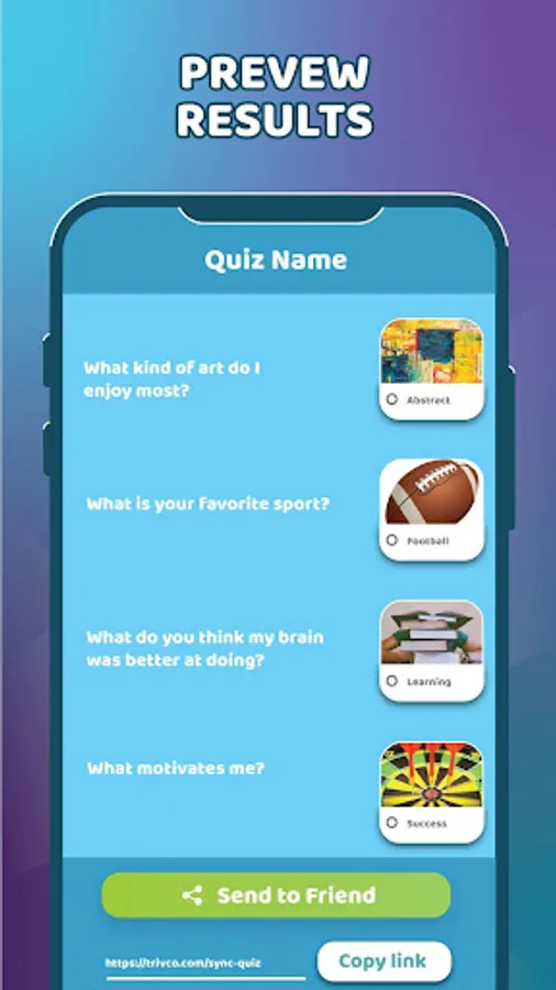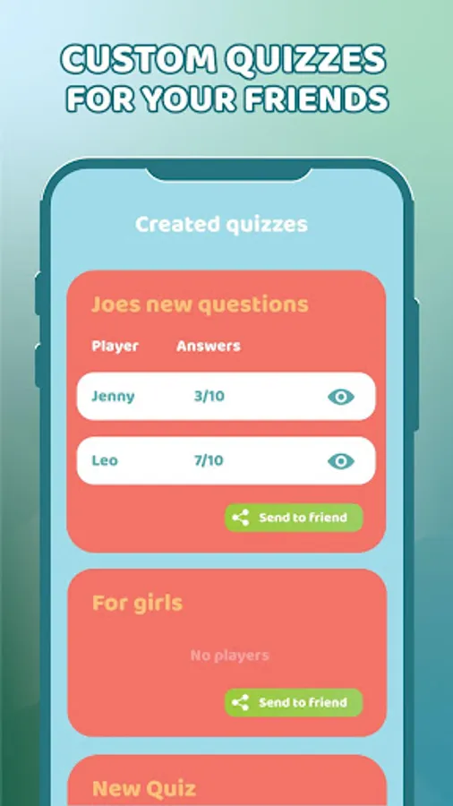 Create custom quizzes with a lot of fun questions and ask your friends how well they know you.