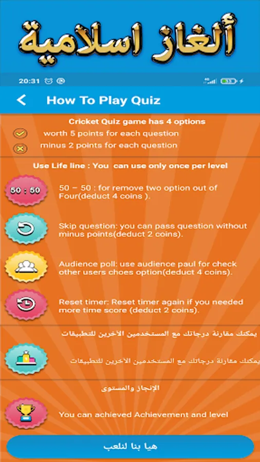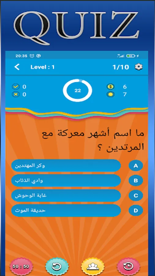 The application contains a question and four answers that include Islamic religious questions, religious general questions, Islamic cultural questions, history, geography, and the most important questions that every Muslim must know. If the answer is wrong