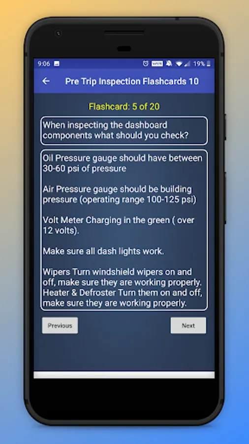 Pre Trip Inspection Test - CDL is a free app to prepare yourself for the CDL pre-trip inspection test. The pre-trip inspection is one of the most important parts of any drive. If you get stopped or your vehicle gets inspected, you want to know that you thoroughly checked every single part of your vehicle before hitting the road. Since a pre-trip inspection can take a long time, it’s important to have a process that you can trust. This app contains questions from the actual pre-trip inspection exam held in 2017, 2018, 2019, 2020, 2021, and 2022.