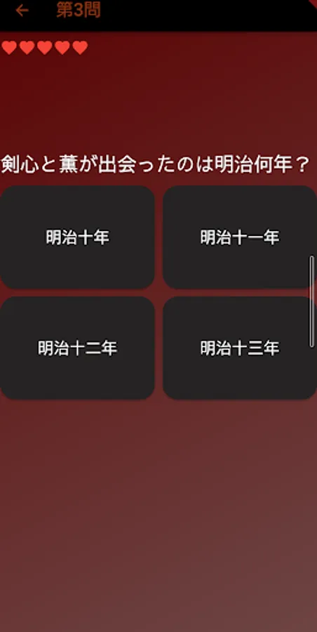 50 4-choice quizzes from the popular manga "Rurouni Kenshin - Meiji Swordsman Roman Tan"!