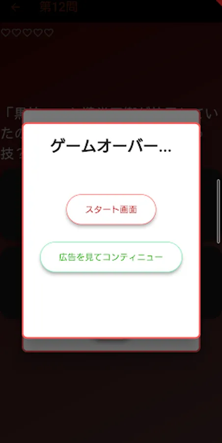 If you get 5 questions wrong, the Heart Gauge will drop to 0, and you can choose to start from the beginning or watch an ad and continue from there.