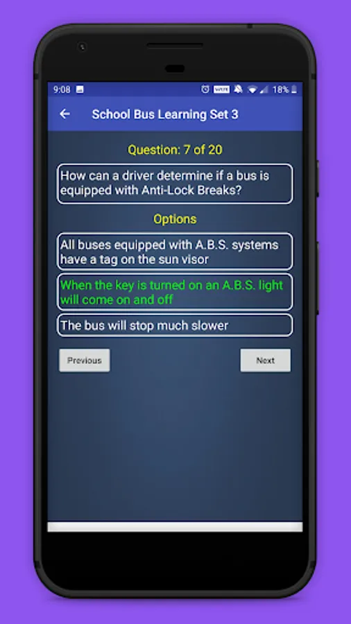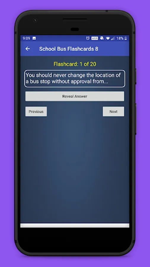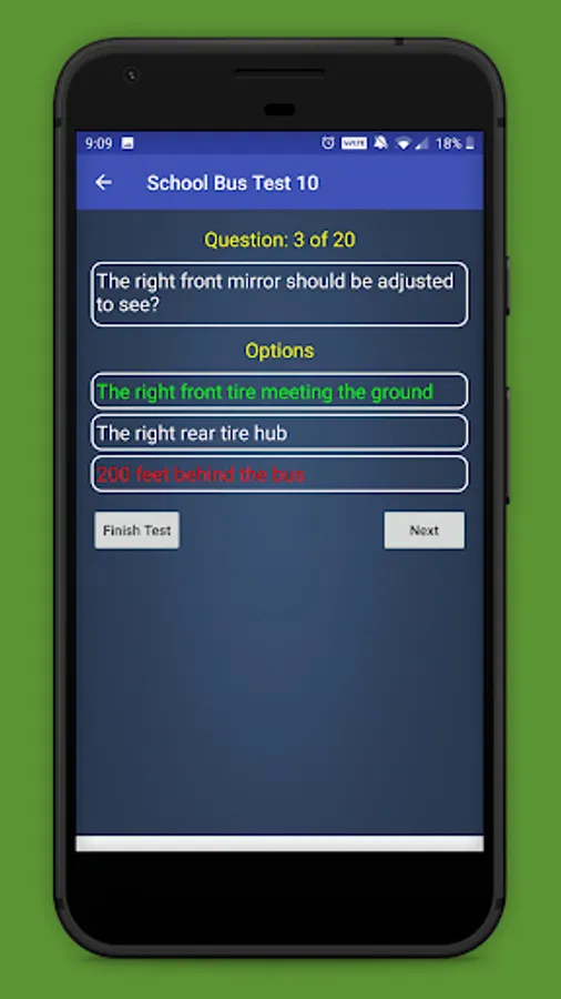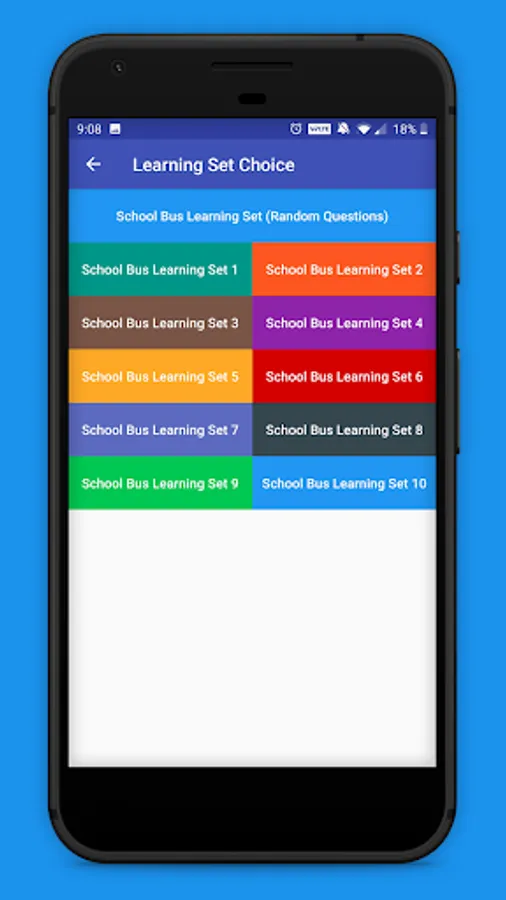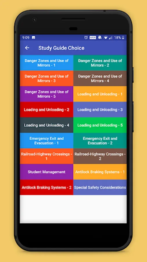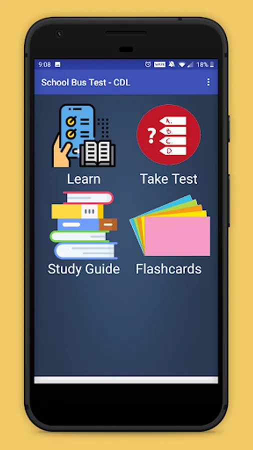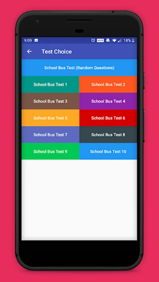 This app contains school bus test questions and answers from various categories: