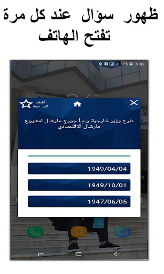 Helps you save and never forget dates and characters from Jalal. Show a question every time you open the phone.