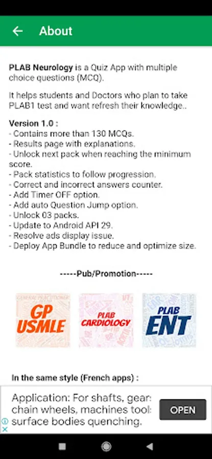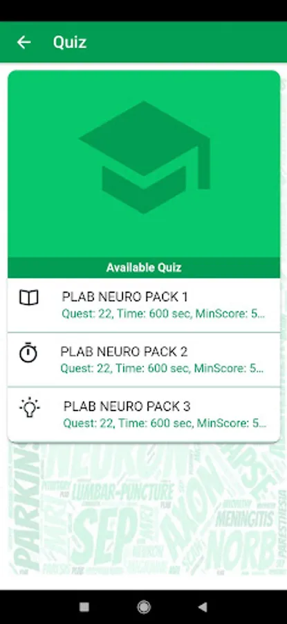 PLAB Neurology is an MCQ quiz Application that provides more than 100 training questions in Cardiology for people who want to take the PLAB 1 test. We took only Neurology Questions and broke them down into packs so that you can unlock them one by one.