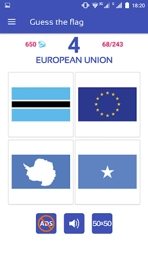 Country Flags Quiz - this game in which you have to guess the flags of different countries. You will be presented with 4 flags where you need to guess whose flag it is. To go through the whole game you have to guess 243 flags. Play this quiz and learn the flags of the states.