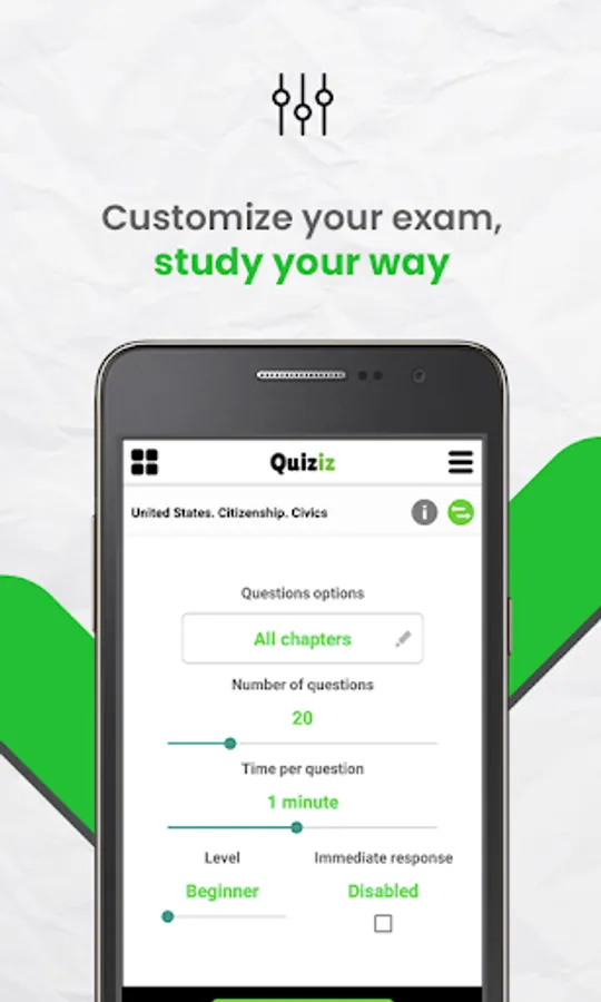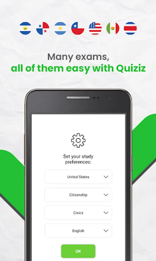 Quiziz is the perfect tool to prepare yourself for many official exams: driving license exam, high school and university admision tests, citizenship and aviation exams; in countries like Costa Rica, Panama, Argentina, Mexico, Chile and US.
