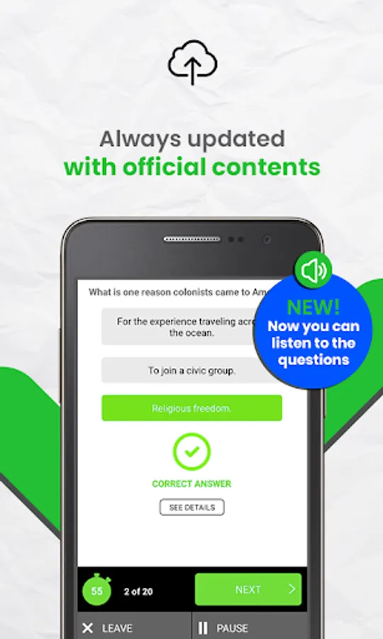 Always update: on Quiziz we work so you can study with the last version of your exam contents. Always.