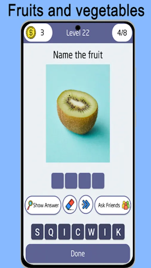 - Questions and answers about fruits and vegetables and also about the most famous food dishes around the world.