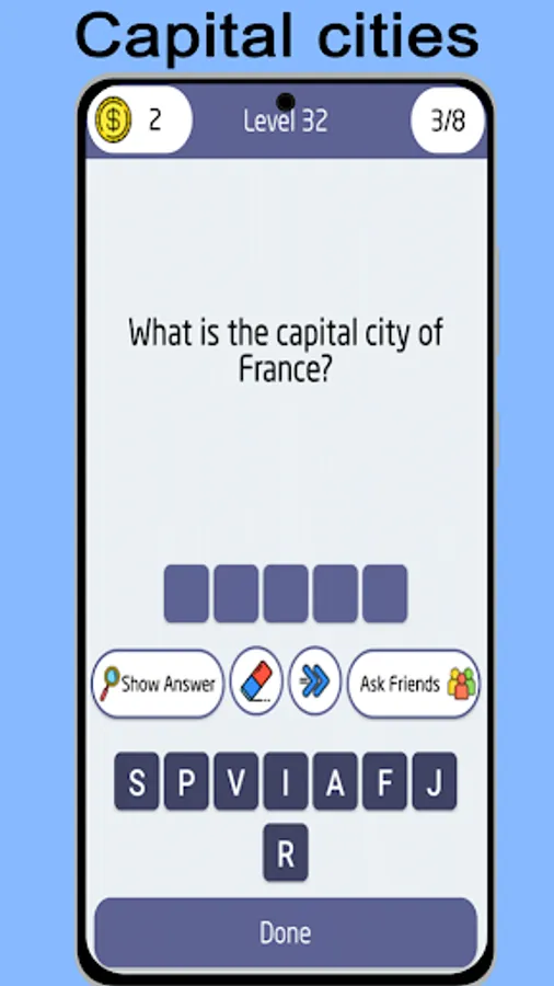 - Questions and answers about World Capital Cities like Paris, Tokyo, Madrid, Abuja, Abu Dhabi, London and many more.