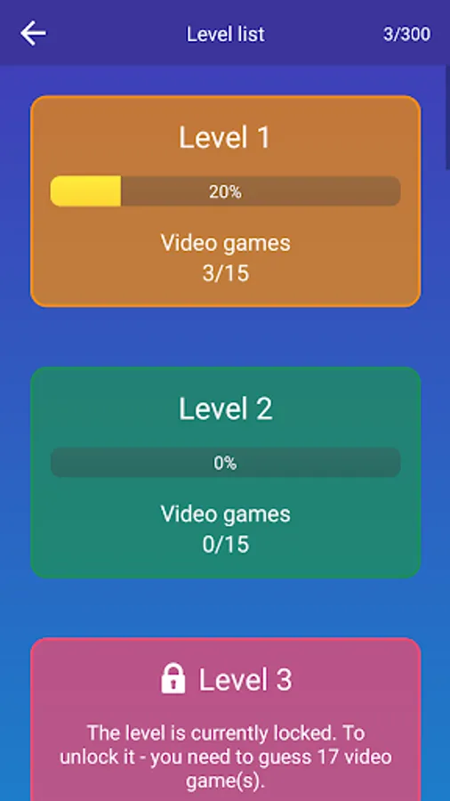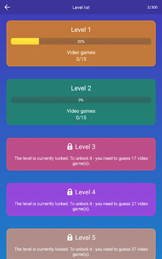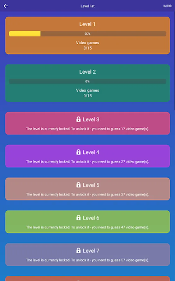 ★ Detailed game statistics. You will always know how many percent of the game you completed, how many unsolved video games are left and what levels are the most difficult for you.