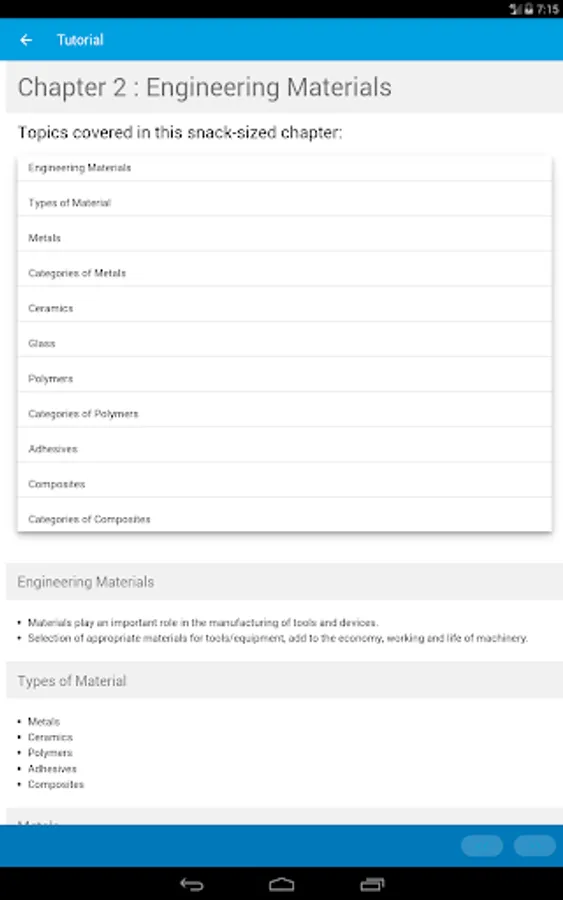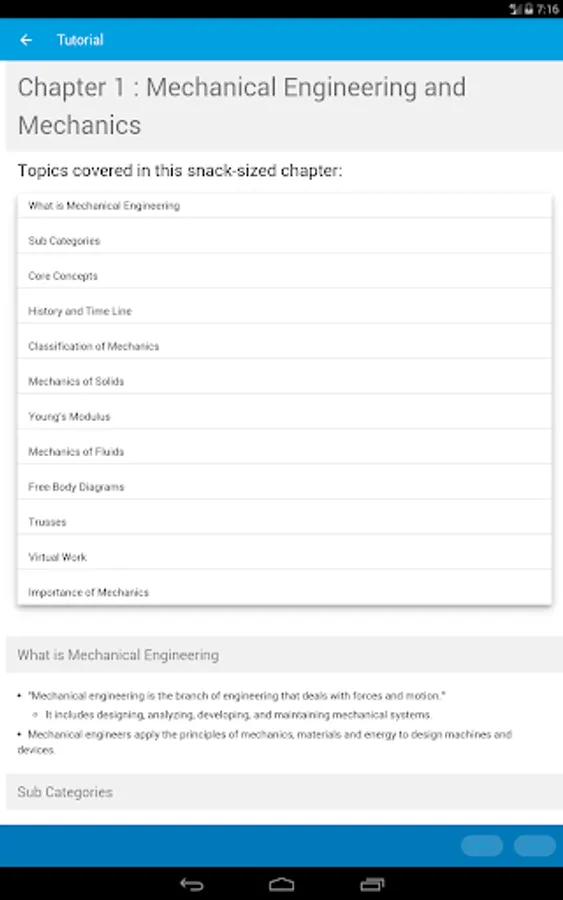 You have limited access to the content provided. For full access to the content, please login and purchase this application. This app provides a quick summary of essential concepts in Mechanical Engineering by following snack sized chapters: