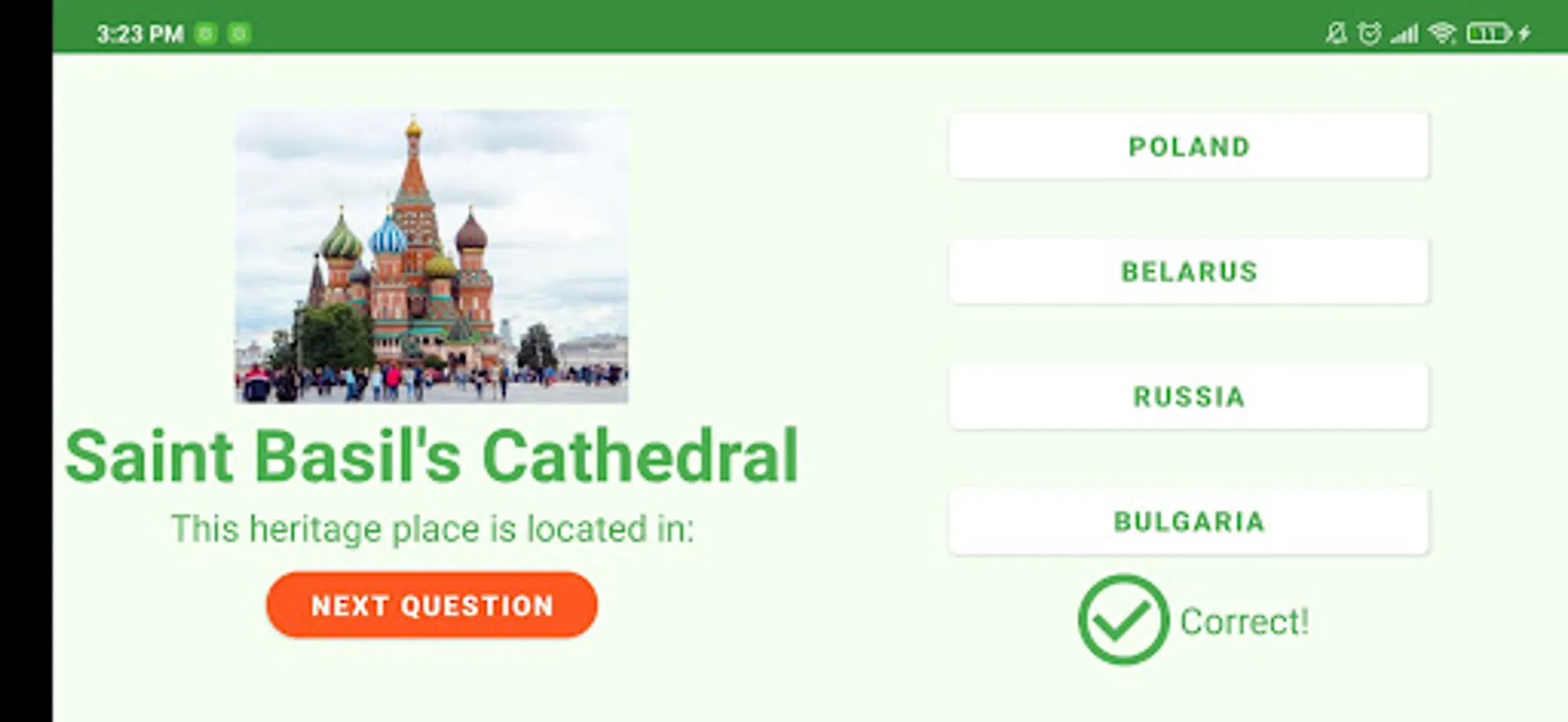 Simple quiz game with interesting and unique questions, news, maps, and medals.