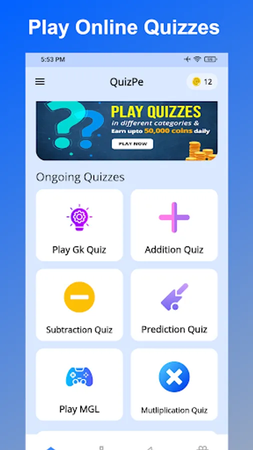 Play Quiz in different categories like Tech, Cricket, Movies and mony more.