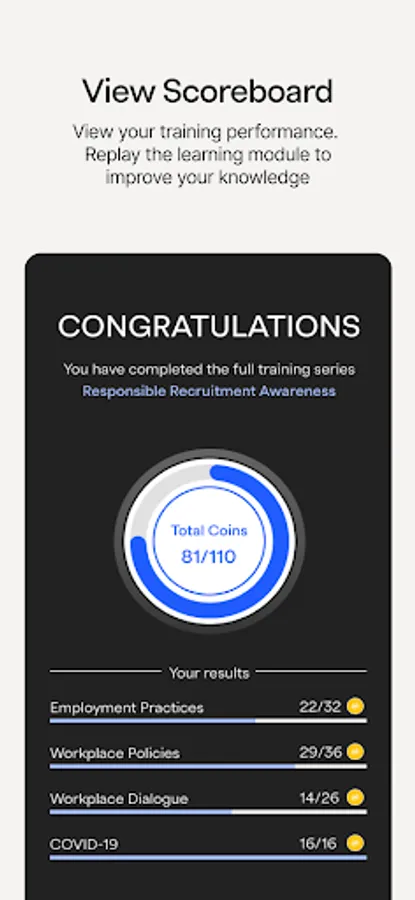 Each training module takes between 15-20 minutes to complete and consists of engaging content, to interact with while following a guided gameboard. Which each step, you’ll progress along a training route and collect coins.