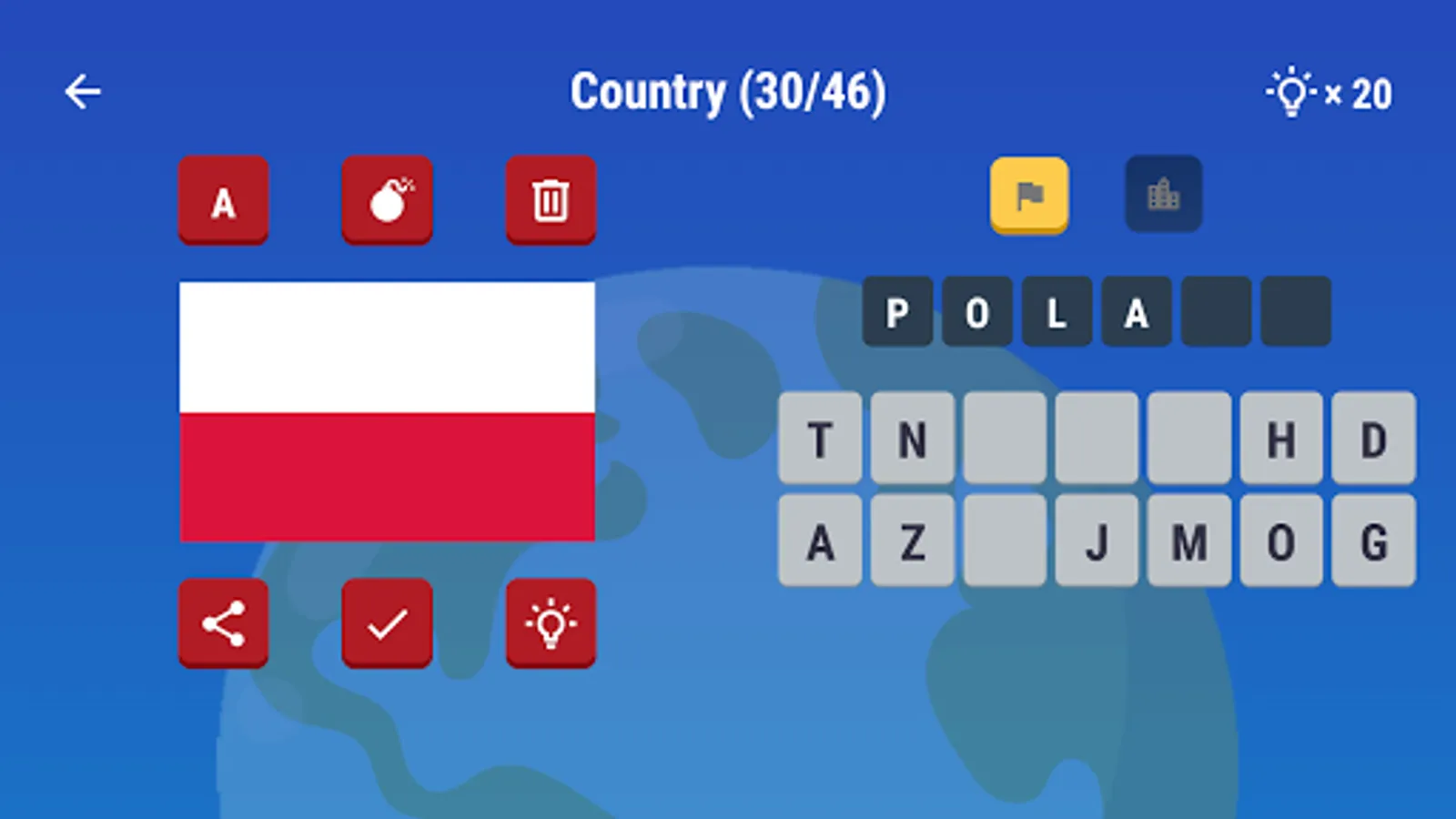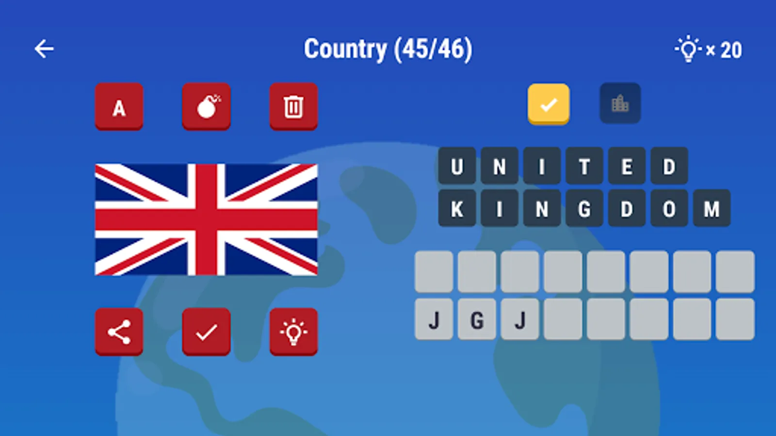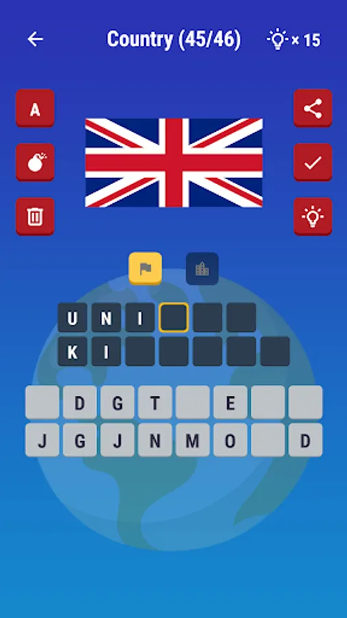 5. Use the letters and spell out the country’s name or capital city for Type it.