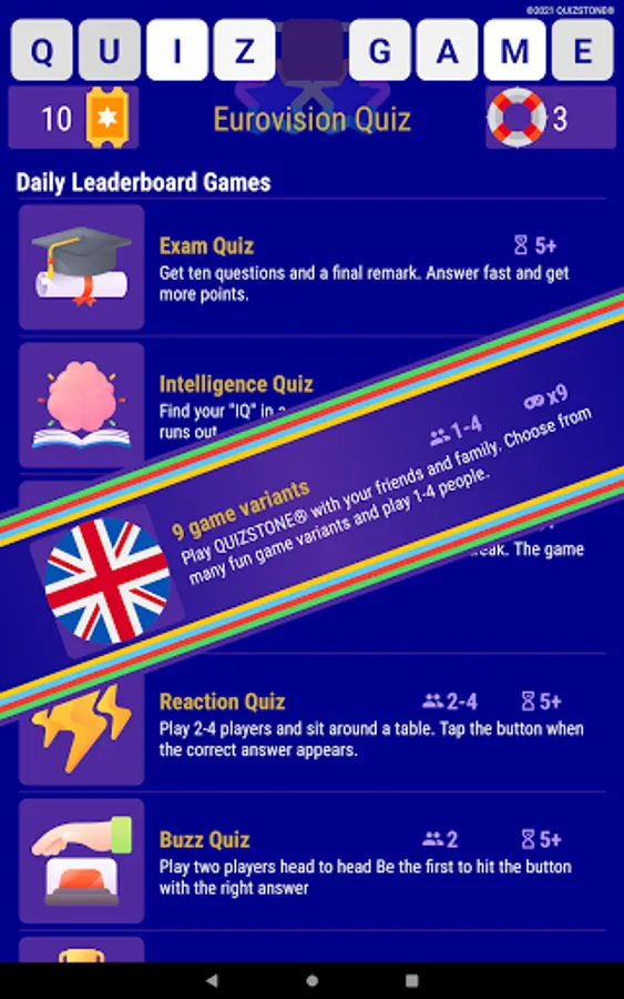 Play QUIZSTONE® with your friends and family. Choose from 9 fun game variants and play 1-4 people.