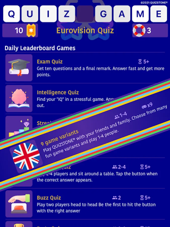 Play QUIZSTONE® with your friends and family. Choose from 9 fun game variants and play 1-4 people.