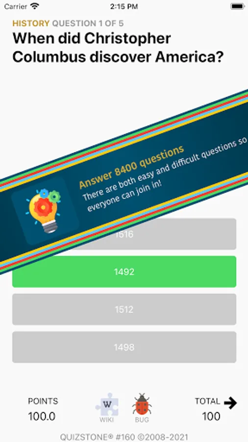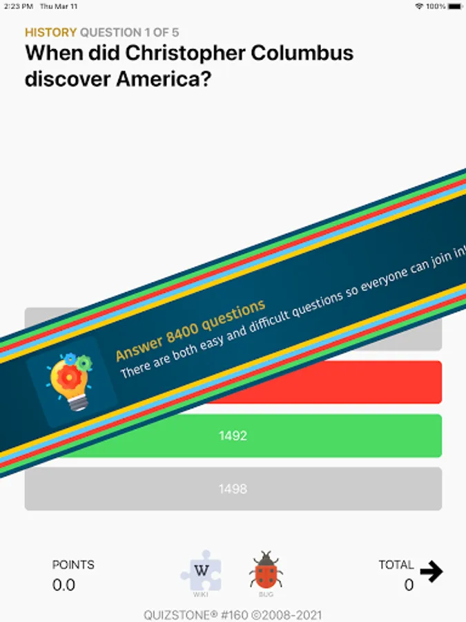 The questions are divided into different categories so there is something for everyone. Most questions are accompanied by links to Wikipedia so you can play and learn something new at the same time.