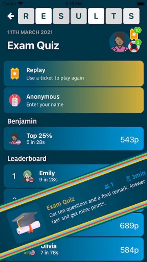 Play daily leaderboard games. Collect lifelines and use them strategically in the games to improve your chances.