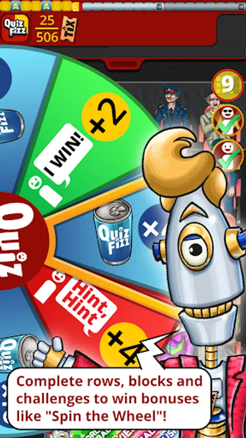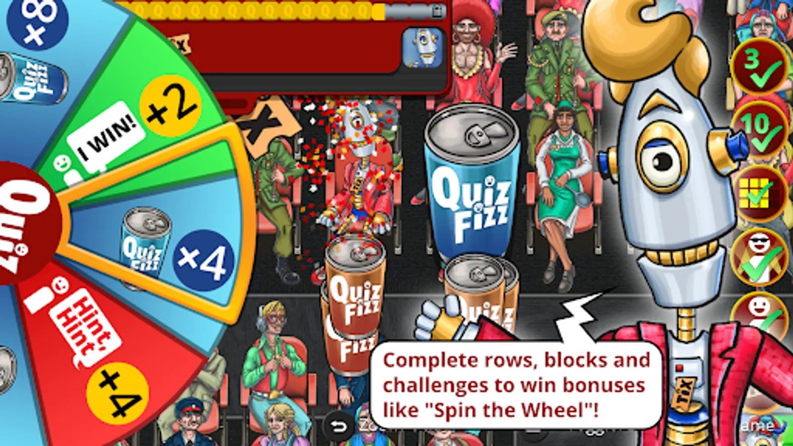 Complete a block of seats to spin the wheel and win bonus Quiz Fizz and power-ups.