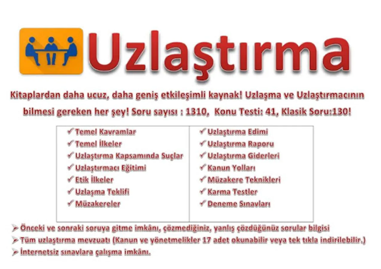 All mediation legislation (Laws and regulations 1-Conciliation Education Subjects, 2-Turkish Criminal Code, 3-Criminal Procedure Law, 4-Conciliation and Conciliation Actions, 5-Conciliation Training Book in Criminal Procedure Law, 6-Conciliation of Children with No Fault Ability Opinion Letter Regarding the Implementation of Provisions, 7-Opinion Letter Regarding Notification and Resignation in Conciliation Procedures, 8-Opinion Letter Regarding SEGBIS in Conciliation Procedures, 9-Opinion Letter Regarding Follow-up of HAGB Decisions In Cases Where the Achievement Determined As A Result of Conciliation is Submitted to the Taxi, 10-Mediator Expenses , 11-Presidential Decree, 12-Opinion Letter Regarding Whether Conciliation Can Be Applied If One Of The Parties Is Abroad, 13-Opinion Letter Regarding That The Trainee Lawyers Can Be Mediation, 14-Mediator Fees, 15-Handbook In Criminal Disputes, 16- Offenses within the Scope of Conciliation, 17th Regulation on the Implementation of Conciliation) can be read.