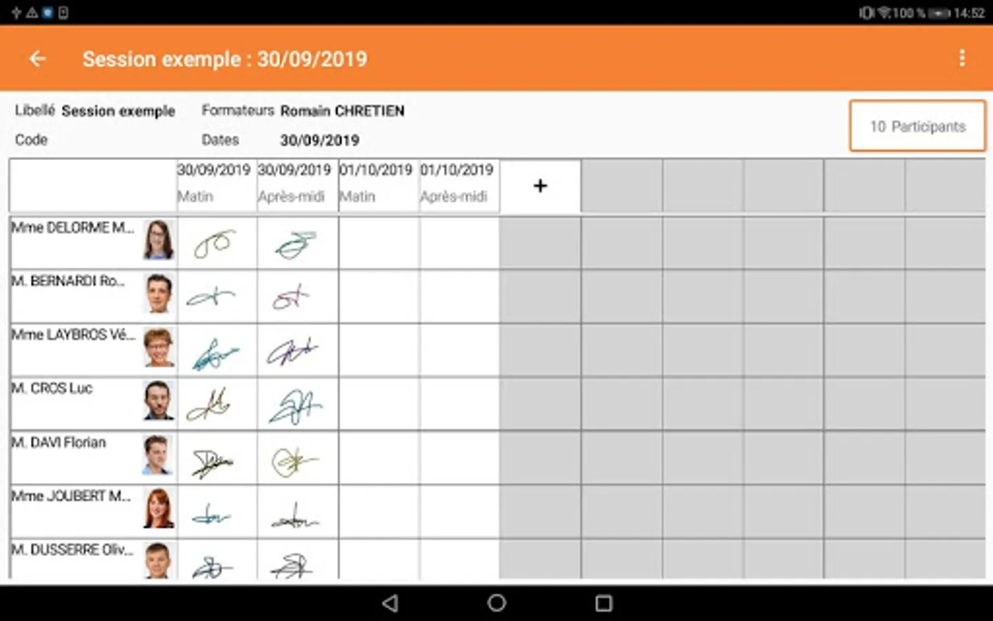 Application allowing to dematerialize the presence sheet of electronic signatures of Quizzbox participants.