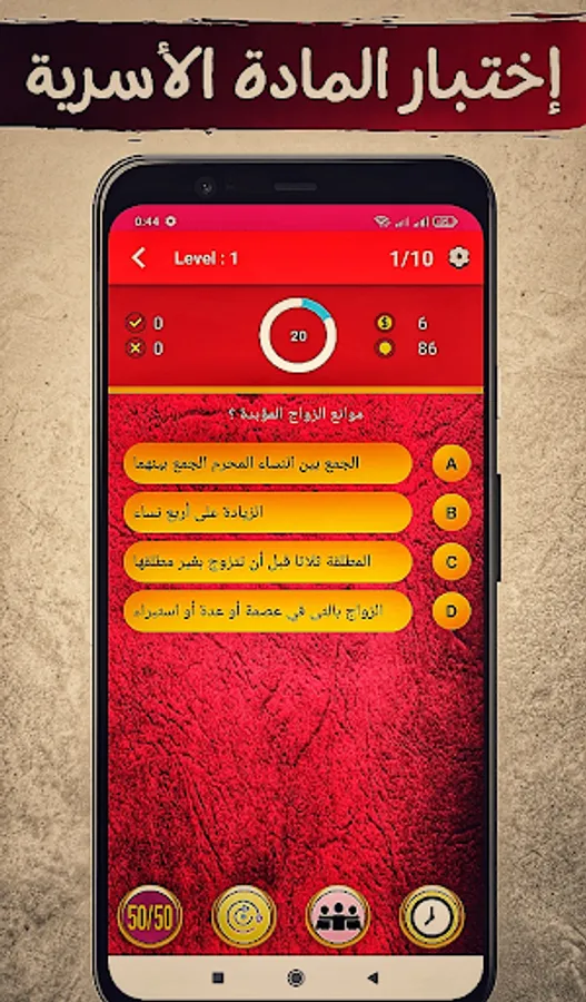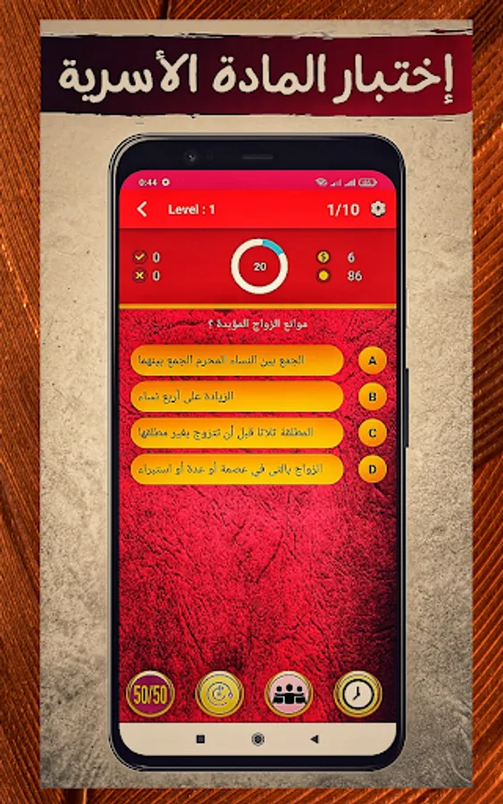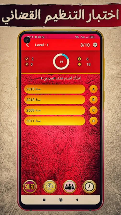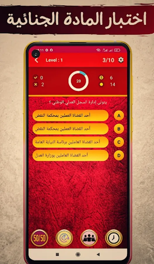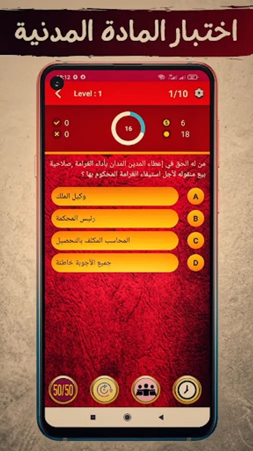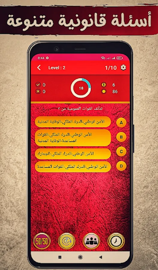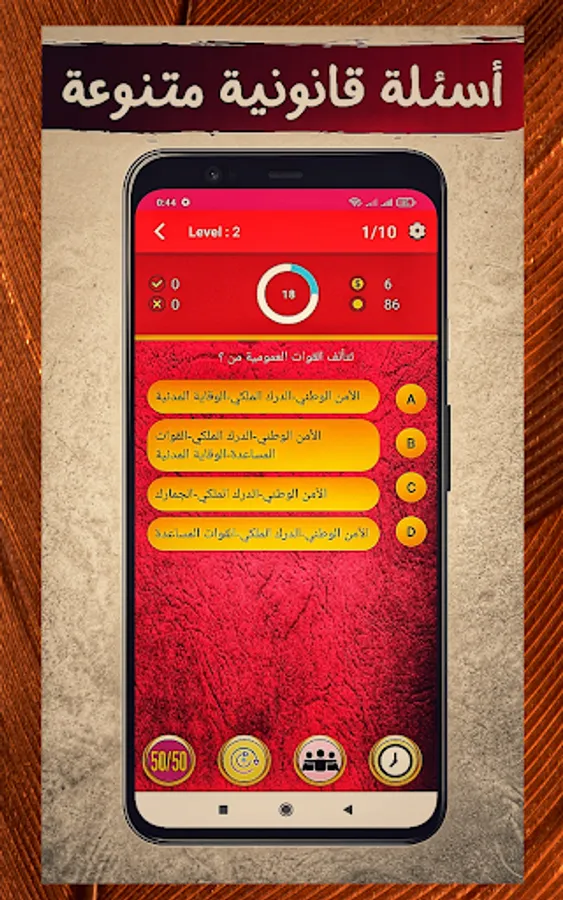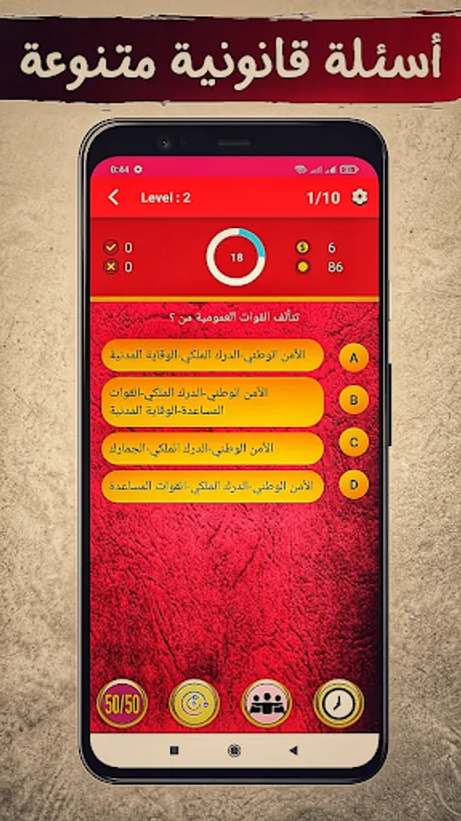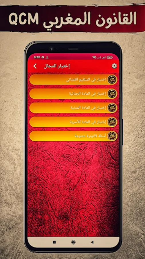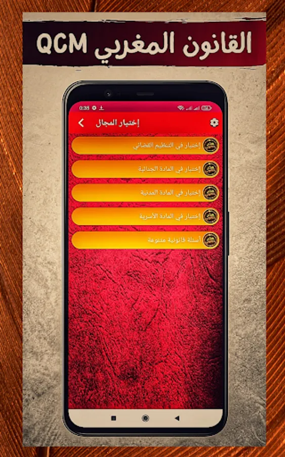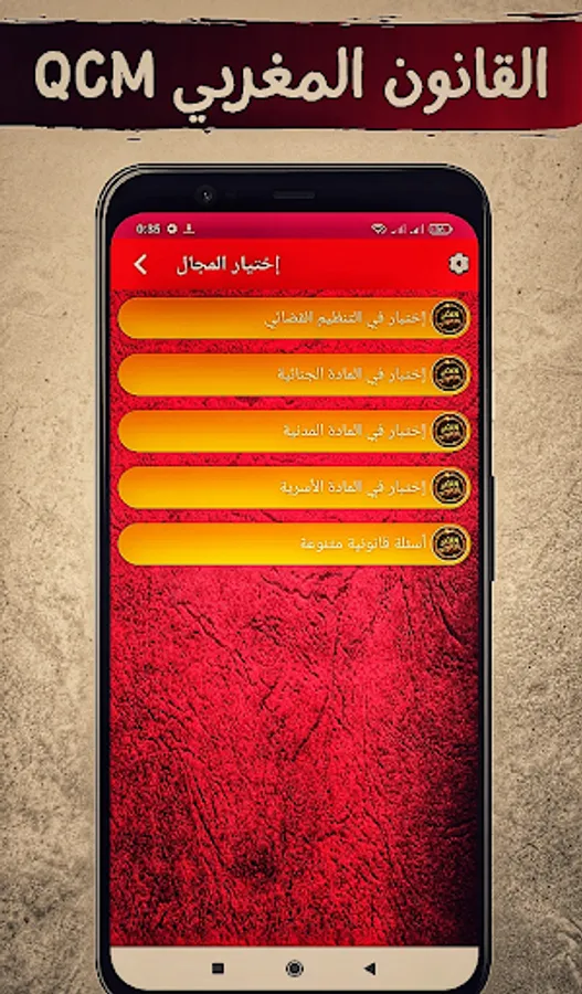 The application of "Moroccan Law QCM" depends on the format of the multiple-choice test (one question and four choices). It allows students to test their legal knowledge and acquire legal culture.