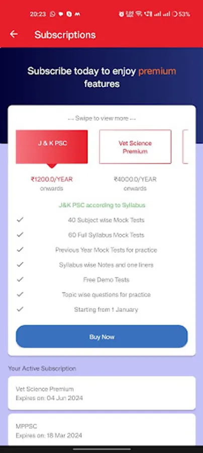 Using the app one can play subject and topic wise quizzes and thus can test their preparation for competition .