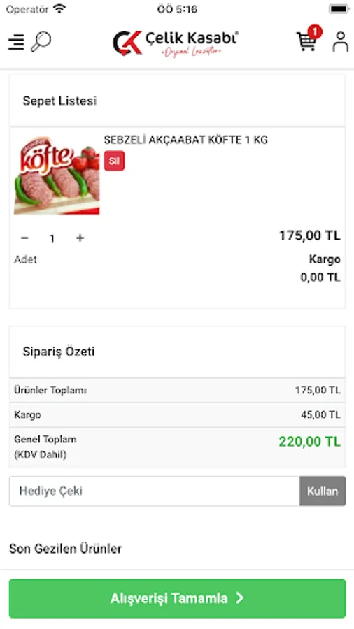With the Çelik Butcher mobile application, you can examine and buy meat and meat products.