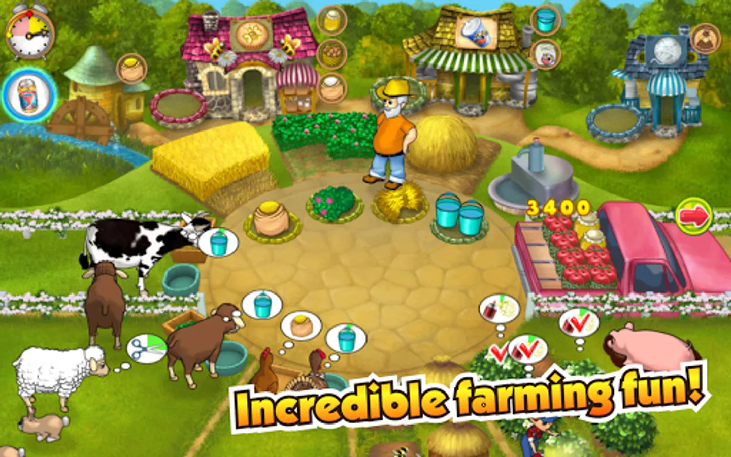 Use modern technologies and your own know-hows to build your dream farm! Plunge yourself into fresh air and nature, enjoy serene countryside around you! Achieve the best results in farming playing this challenging time management game from QUMARON!