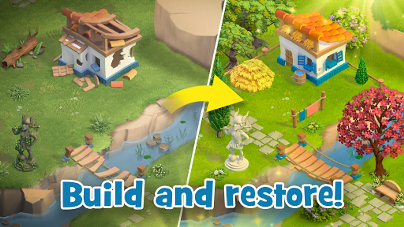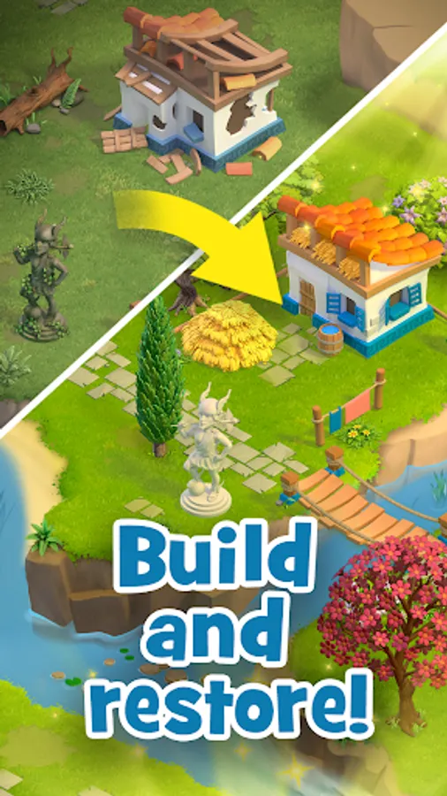 Mobile game adventure on the green island of magical myths! Island games adventure! Farm adventure games in lost island! Building games about a family farm in adventure islands! Our adventure family farm building game lands of legends will give you unforgettable adventures and journeys through fabulous islands in a lost world! If you like games, farm building games, island adventure games, games for the whole family, then our game land of legend is what you were looking for! Farm game in the world of city building games! Huge family island in the world of farm simulator games.
