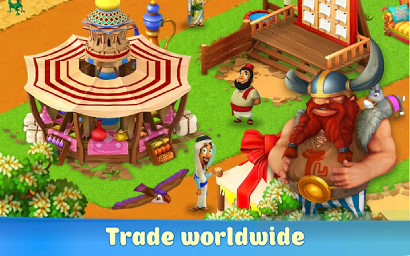 Farm city building simulator! Simulator game! Farm simulator game! Farm Mania Silk Road is a farm building simulation game in a paradise, exotic place. Farm game! Build a farm and develop the city! Farm Mania - Farm simulator where the player will plunge into the farm life on the silk road! Family Adventure, farming simulator game! Welcome to Farm Mania! Farm Mania: Silk Road is a colorful game, an exciting adventure and medieval history in which you will play the main role - the role of a wise ruler, a skilled merchant and a grandiose architect. Build an oriental dream city, develop trade, create numerous goods and sell them Worldwide! Equip a real caravan, explore the world and trade with neighboring cities, expand your trading empire! Build a farm, harvest crops, take care of animals, trade on the Silk Road!