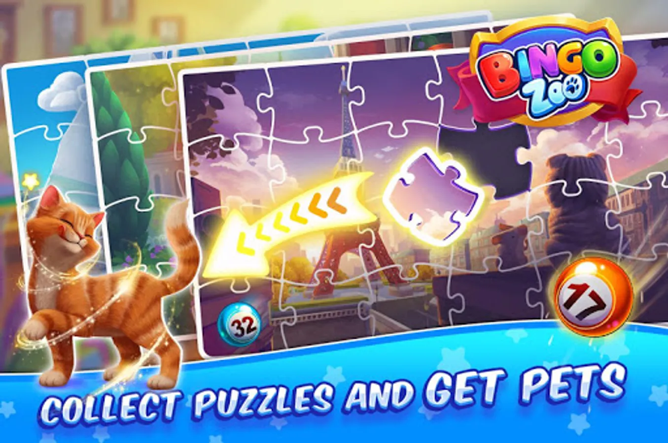 - Collect puzzle cards for Pets Assets, create unique pets then start your own bingo Journey!