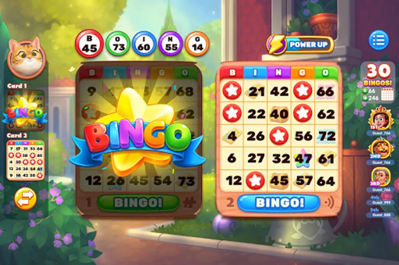 Never miss this exciting real-time Bingo game! Hourly FREE chips, huge JACKPOTS, multiple bingo winnings, Rich Assets cards, delicate puzzle collections...It’s time to hit the winning and get into the LUCKY bingo heaven!