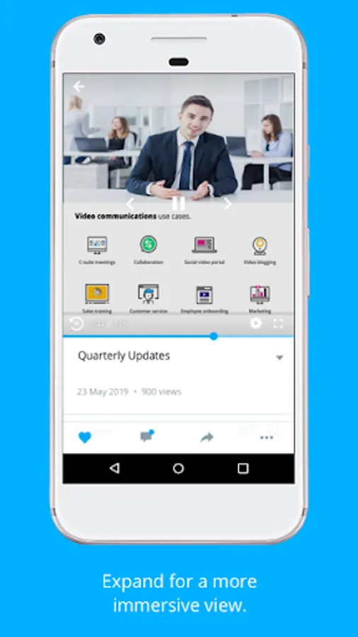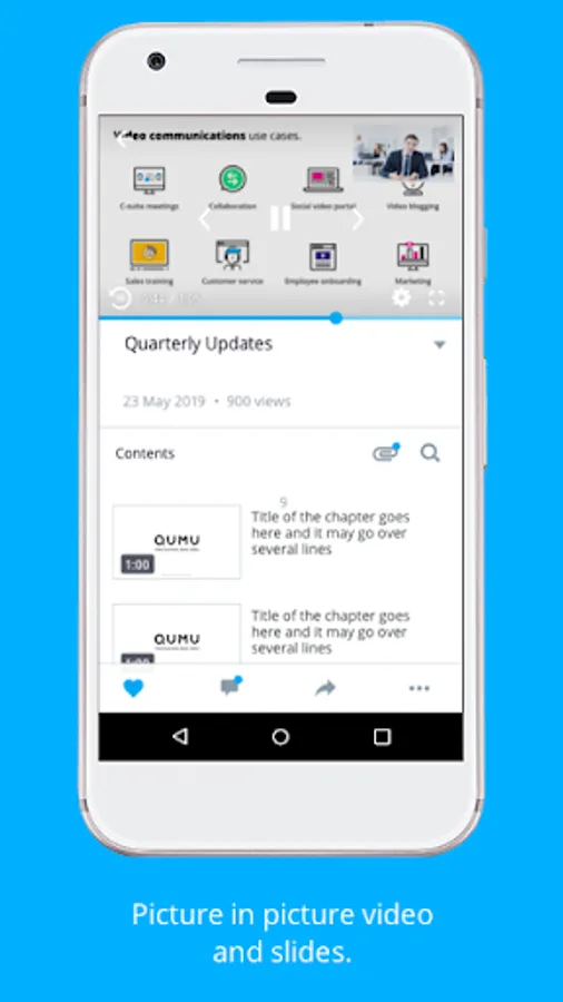 Qumu View provides Qumu Cloud users with a superior viewing experience on mobile. It puts content in the hands of who need it, and they get notified immediately when new content has been published. It makes Qumu videos a social communications tool for enterprise.