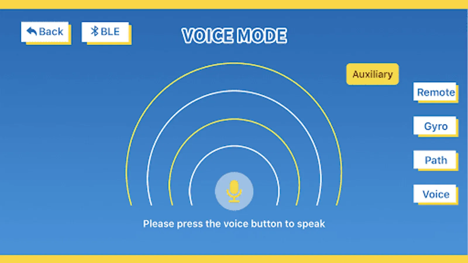 This block coding app is an incredibly innovative product that leverages Bluetooth broadcasting to offer a range of control modes. The remote control mode enables users to remotely control device movement and actions through a handheld device controller, while the gyroscope control mode utilizes the phone's gyroscope to control device direction and speed through phone tilting. The path drawing mode allows users to draw paths on the device, which the device then follows, while the voice command mode enables users to control device movement and actions through voice commands.