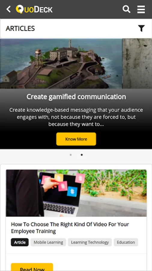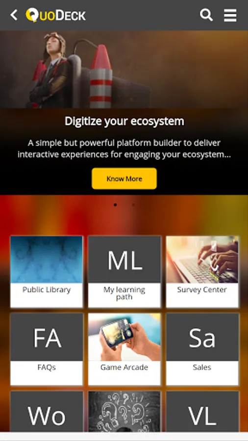 Explore QuoDeck is a game based learning management system. We believe learning is done best in bit sized modules, consumable by learners on mobile using the portrait view. Download this app to get a quick glimpse of how the learning app works and explore our gamification concepts and game based assessments.