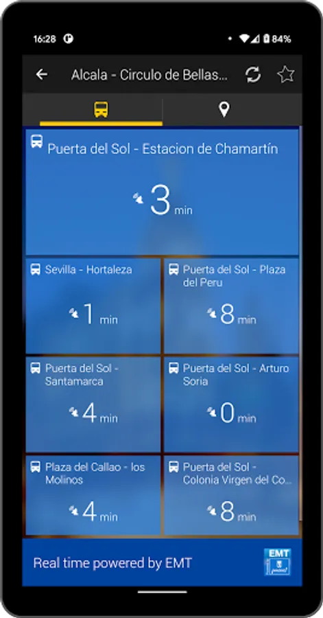 - Real time information of the bus arrival (Powered by EMT)