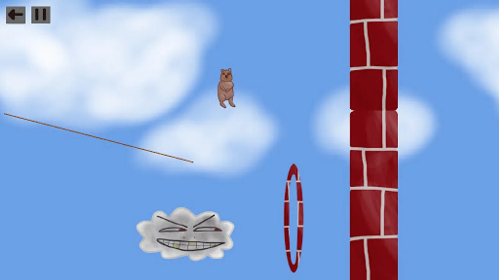 Draw lines to bounce the quokka to the rainbow cloud.