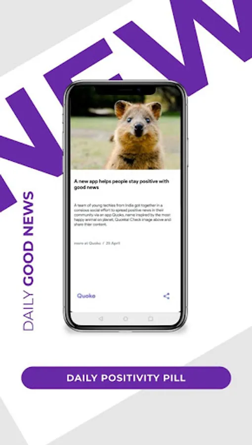 Quoko is your daily dose of instant positivity bringing you good news from around the world in a short and sweet format! Named after Quokka, popularly known as the "world's happiest animal", Quoko wants to bring a smile to your face with feel-good news!