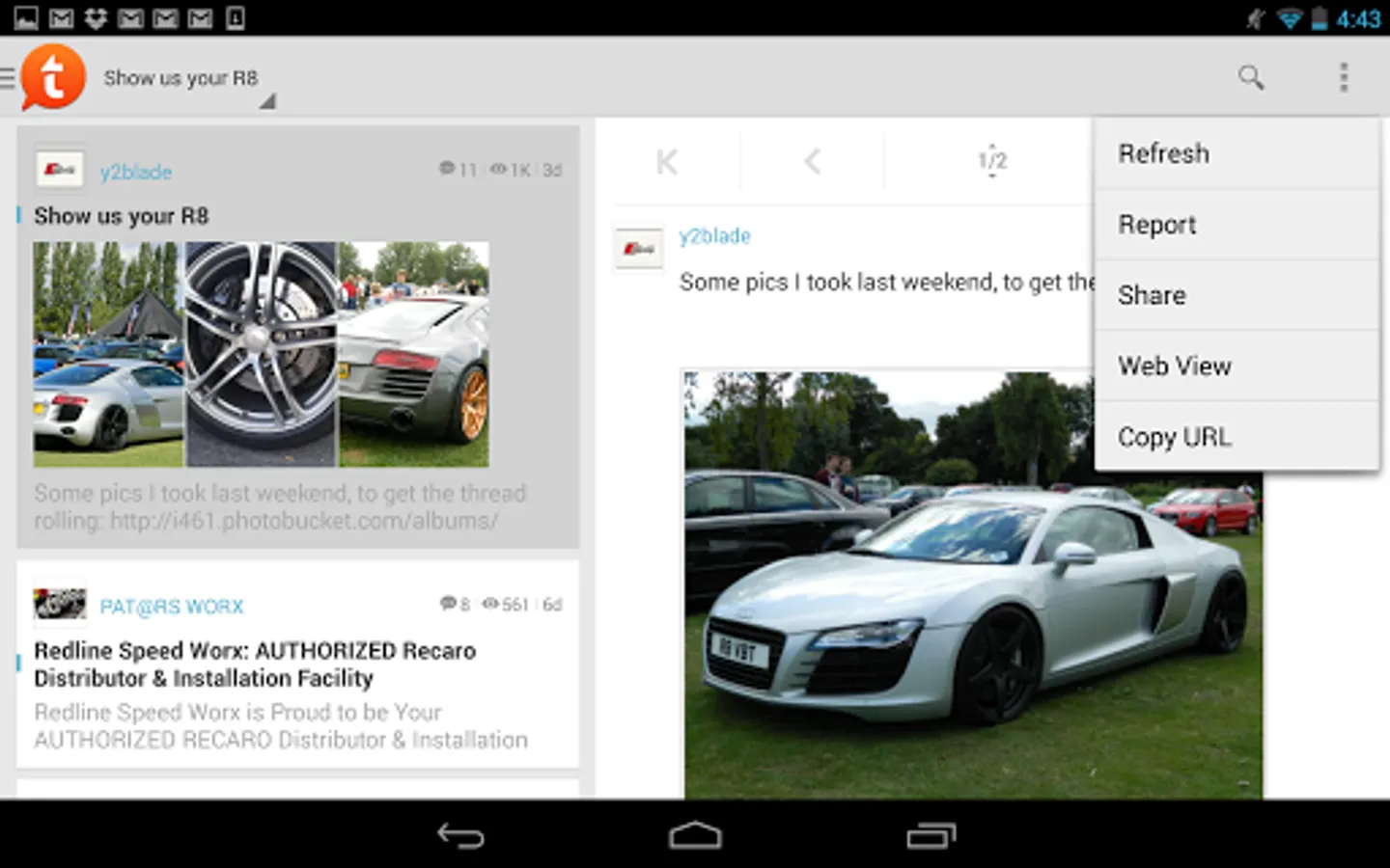 Tapatalk is the mobile home to over 200,000 online forums worldwide. On Tapatalk, you will be interacting with like-minded individuals to develop meaningful conversations on the topics that interest you. You'll never have to wait until you get home to upload the fun images to your favorite forums. Instant push notifications will allow you to never miss out on any topics update.