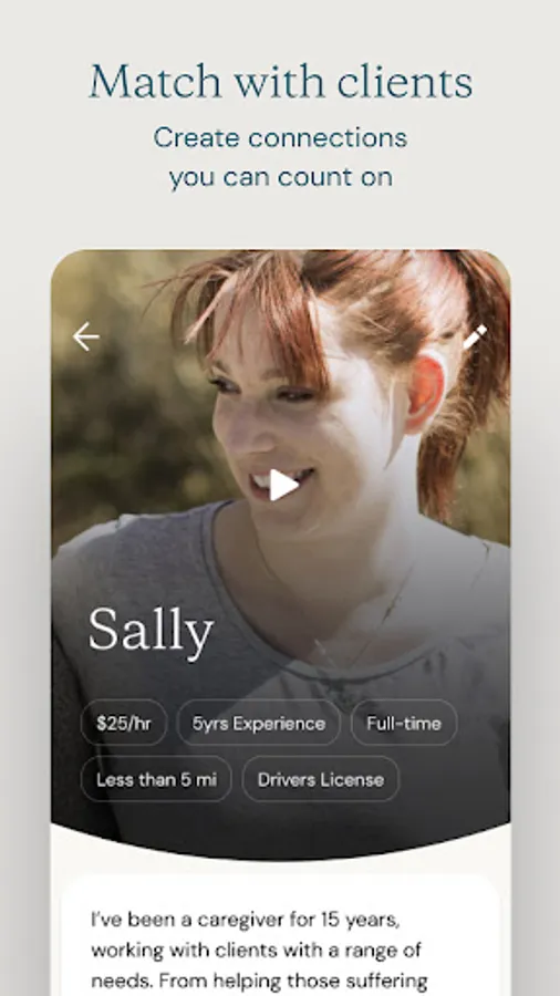 Get free, exclusive access to top in-home care jobs with our new client-matching service and a live team of expert care recruiters on your side. Set your pay, schedule, commuting distance, & other preferences in your profile, and manage your job search, interviews, and current clients all from one easy place in our app.