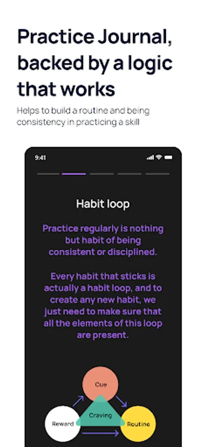 To get started, users can choose their areas of interest, such as mindfulness, yoga, or meditation. Then, they can add a cue, which is a reminder or trigger that prompts them to start their practice session. They can also add a craving, which is the reason they want to engage in the practice, and a reward, which is the benefit they will receive upon completing the session.