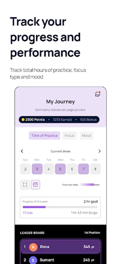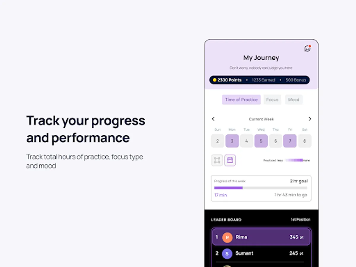 To ensure that users stay focused during their practice sessions, the app also includes timed practice sessions. Users can set the duration of their practice session, and the app will provide a countdown timer to help them stay on track.