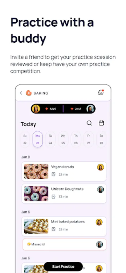 Users can set weekly targets for themselves, such as a certain number of practice sessions per week, and the app will provide reminders to help them stay on track.
