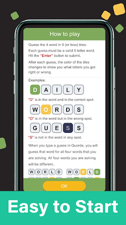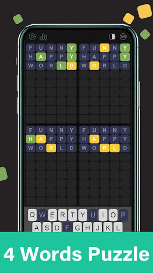 Quorde - Daily Word Puzzle is an addictive daily word game where you need to guess the word. Your task is to work out 4 five-letter words in up to 9 guesses. Train your brain while trying to guess all the words!