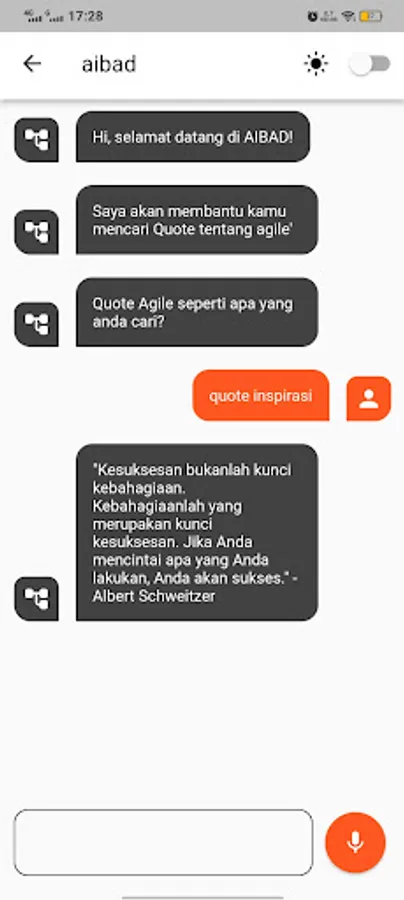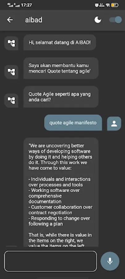 AIBAD (Assistant Information Based on Agile Development) is your assistant to find information and quotes to generate motivation and enthusiasm for life