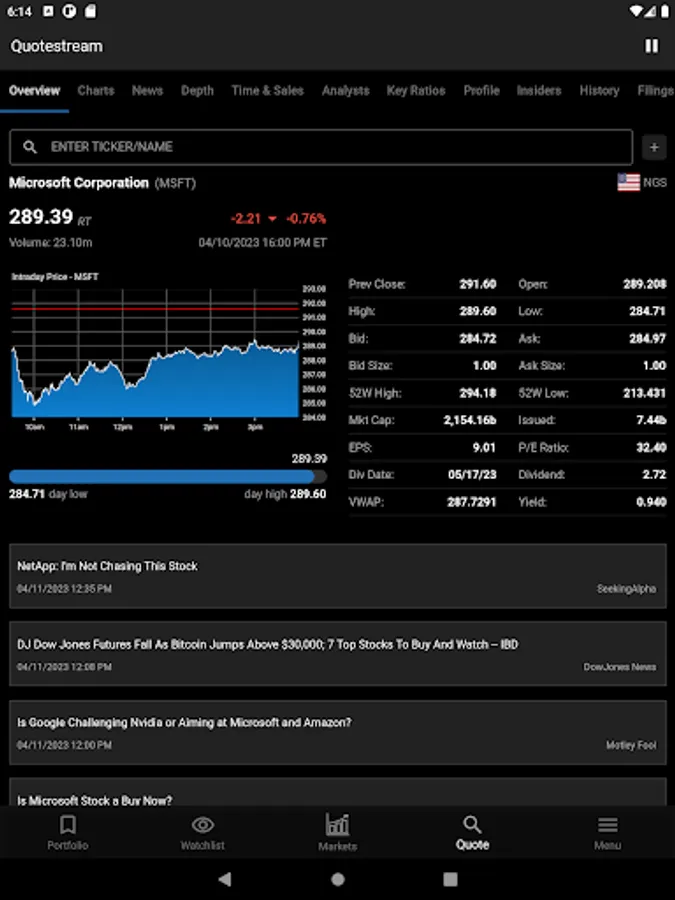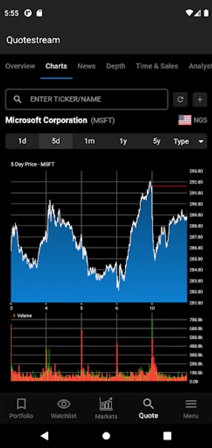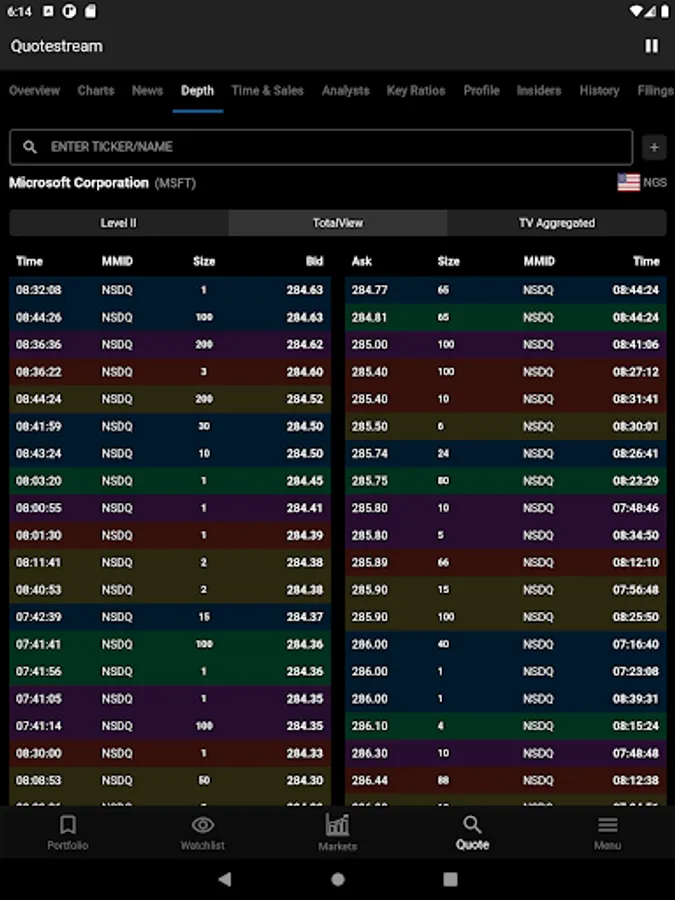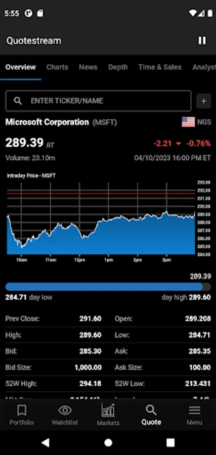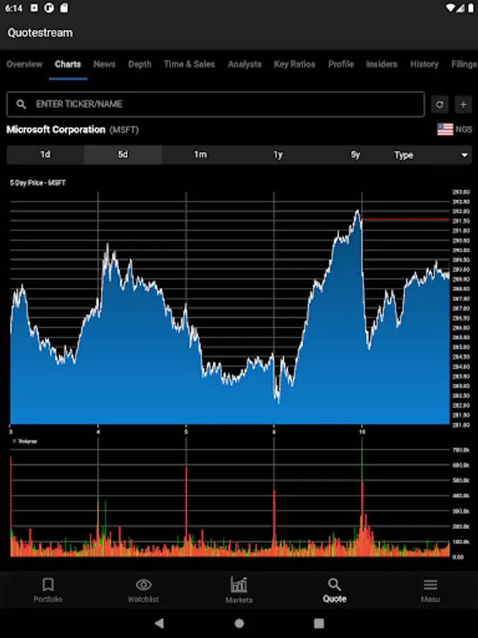 Quotestream Mobile provides access to real-time data, research information, portfolio management, stock quotes, intraday and historical charts, market updates, forex and currencies, watchlists, company news and press releases, market movers, and more.