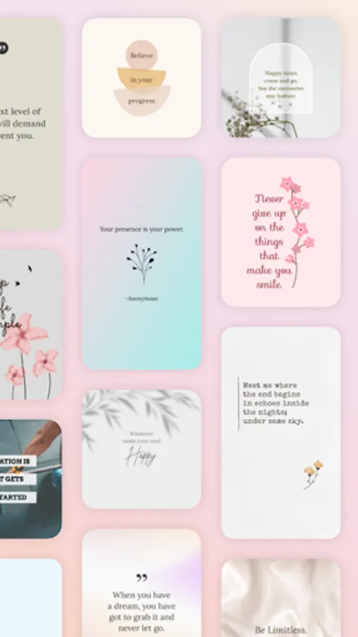 Make your quote stand out by using eye-catching backdrops and graphics. Use our quotes generator to create quotes with images! The quotes design template and quotes images you created can be saved. Later, you may edit the content to make your personalized quotes and utilize that template to create quotes with pictures you can upload to social media sites.